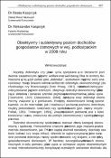 Item type: Pozycja , Instytucjonalne i inne uwarunkowania relacji wzrost gospodarczy a nierówności społeczne(Wydawnictwo Uniwersytetu Rzeszowskiego, 2009-12) Soszyńska, ElżbietaW artykule zamieszczono podsumowanie wskazań najnowszych teorii, jak i wyników badań empirycznych, dotyczących związku między nierównościami w dochodach, nierównościami z tytułu rozkładu zasobów a wzrostem gospodarczym w skali makro. Poszukiwanie uniwersalnego wzorca wpływu nierówności w dochodach na wzrost gospodarczy w procesie modelowania ekonometrycznego, spełniającego między innymi warunki odporności modelu bazowego na zmianę specyfikacji, nie w pełni powiodło się. Potwierdzono, że nierówności wynikające z rozkładu zasobów, a zwłaszcza w kontekście gospodarki stymulowanej wiedzą, nierówności w dostępie do kapitału ludzkiego wyhamowują długookresowy wzrost gospodarczy. Wśród głównych kanałów transmisji nierówności w kapitale ludzkim na wzrost gospodarczych udowodnione zostały: kapitał ludzki i jakość instytucji.Item type: Pozycja , Psychologiczne uwarunkowania decyzji zakupu samochodów luksusowych(Wydawnictwo Uniwersytetu Rzeszowskiego, 2009-12) Klimkowska, ReginaAutorka w swym artykule koncentruje się na przedstawieniu rynku samochodów luksusowych. Rynek samochodów luksusowych jest segmentem rynku nowych samochodów osobowych w Polsce. Możemy zobaczyć znaczący spadek sprzedaży nowych samochodów od roku 1999 aż do dzisiaj. W 1999 r. sprzedano ok. 640 000 nowych aut, a w 2007 r. tylko 293 300. Całkiem nowym zjawiskiem jest rynek nowych samochodów luksusowych. Sprzedaż na rynku nowych samochodów luksusowych systematycznie wzrastała. W 2000 r. wynosiła 4800 aut, w 2007 r. sprzedano już ok. 16 000 luksusowych aut. Artykuł prezentuje najważniejsze czynniki psychologiczne determinujące ten rynek.Item type: Pozycja , Funkcjonowanie gospodarstw osób niepełnosprawnych w polskim systemie społeczno-ekonomicznym(Wydawnictwo Uniwersytetu Rzeszowskiego, 2009-12) Ulman, PawełJak pokazują dane statystyczne, niepełnosprawność w Polsce jest problemem społecznym wymagającym szerokiego i poważnego zainteresowania nie tylko odpowiednich fundacji i instytucji pozarządowych, ale także instytucji państwowych. Wejście Polski do Unii Europejskiej w 2004 roku niosło nadzieję na poprawę szeroko rozumianej sytuacji niepełnosprawnych. W wielu aktach Unia Europejska zachęca lub narzuca tworzenie antydyskryminacyjnych warunków funkcjonowania poszczególnych osób czy grup społecznych, a w przypadku osób niepełnosprawnych kładzie szczególny nacisk na likwidowanie barier. Celem pracy jest spojrzenie na sytuację społeczno-ekonomiczną polskich gospodarstw domowych z osobą niepełnosprawną w odniesieniu do pozostałych gospodarstw w okresie kilku ostatnich lat. Okazuje się, że dystans między tymi grupami społecznymi nie tylko się nie zmniejszył, ale nieznacznie uległ zwiększeniu.Item type: Pozycja , Sytuacja materialna w gospodarstwach domowych z osobą bezrobotną (w świetle wyników badań własnych)(Wydawnictwo Uniwersytetu Rzeszowskiego, 2009-12) Zalega, TomaszW artykule przeanalizowano sytuację materialną gospodarstw domowych z osobami bezrobotnymi. W świetle uzyskanego materiału źródłowego skoncentrowano się na dogłębnej analizie sytuacji finansowej, działań podejmowanych w celu poprawy warunków materialnych oraz subiektywnej oceny warunków materialnych ankietowanych gospodarstw domowych.Item type: Pozycja , Obiektywny i subiektywny poziom dochodów gospodarstw domowych w woj. podkarpackim w 2008 roku(Wydawnictwo Uniwersytetu Rzeszowskiego, 2009-12) Kasprzyk, Beata; Kasprzyk, AleksanderDochód stanowi istotne kryterium oceny jakości życia. W kształtowaniu dochodów istotną rolę odgrywają wewnętrzne cechy gospodarstw domowych, jak: skład demograficzny, źródło utrzymania, wykształcenie, miejsce zamieszkania i inne. Podstawowe miary statystyczne rozkładu dochodów, uzyskane na podstawie badań ankietowych wskazują na raczej niskie i mocno zróżnicowane poziomy dochodów w badanej próbie losowej. Średni dochód rzeczywisty oraz dochody subiektywne wskazane jako minimalne i wystarczające zmieniają się w zależności od kryteriów przynależności gospodarstwa do danej grupy klasyfikacyjnej. Niekorzystne są także relacje pomiędzy obiektywnymi a subiektywnymi poziomami dochodów. Parametry opisowe rozkładu dochodów wskazują na istotne różnice w wielkości dochodów, które następnie mają bezpośredni wpływ na proces rozwarstwienia ekonomicznego i nierównomierności ekonomicznej. Grupami gospodarstw o zdecydowanie lepszej sytuacji materialnej są gospodarstwa z wykształceniem wyższym głowy gospodarstwa oraz gospodarstwa domowe osób pracujących na własny rachunek. Najtrudniejszą sytuacją materialną charakteryzują się gospodarstwa domowe rolników, emerytów i rencistów, wieloosobowe oraz z niskim wykształceniem głowy gospodarstwa. Niski poziom oraz dyspersja dochodów społeczeństwa stanowią pochodną współczesnych przemian gospodarczych i społecznych, związane są szczególnie ze zjawiskiem opóźnień gospodarczo-kulturowych regionu Podkarpacia w stosunku do innych regionów w kraju. Należy mieć nadzieję, że pozytywny wpływ na niwelowanie niekorzystnej sytuacji dochodowej może wywierać polityka regionalna, zwłaszcza w zakresie edukacji.Item type: Pozycja , Nowe zjawisko w badaniach społecznych – identyfikacja wykluczenia społecznego wśród studentów Podkarpacia i ich rodzin(Wydawnictwo Uniwersytetu Rzeszowskiego, 2009-12) Chudy-Laskowska, Katarzyna; Stępień, KingaNiniejszy artykuł przybliża problem wykluczenia społecznego, które istnieje od dawna wśród wielu społeczeństw, ale dzięki integracji europejskiej zostało zidentyfikowane, nazwane i podejmowane są działania mające na celu przeciwdziałanie tego typu zjawiskom. Celem jest przedstawie