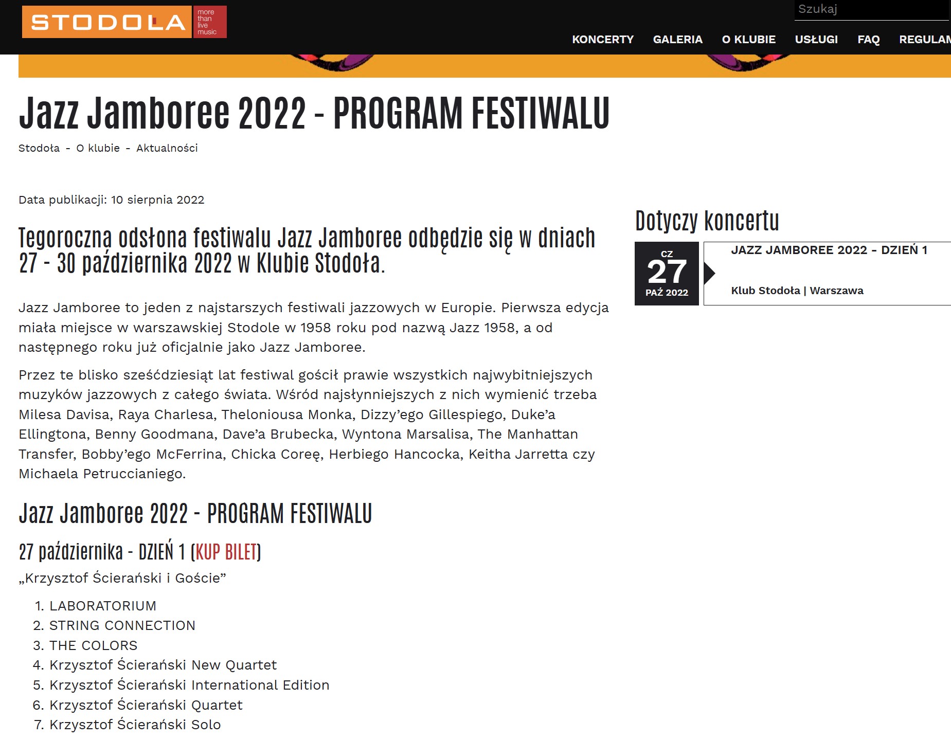 2022-10-27 64. Festiwal Jazz Jamboree- koncert “Krzysztof Ścierański i Goście” / instrumenty klawiszowe