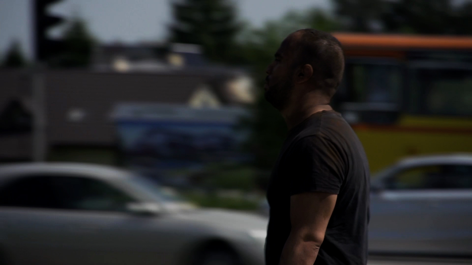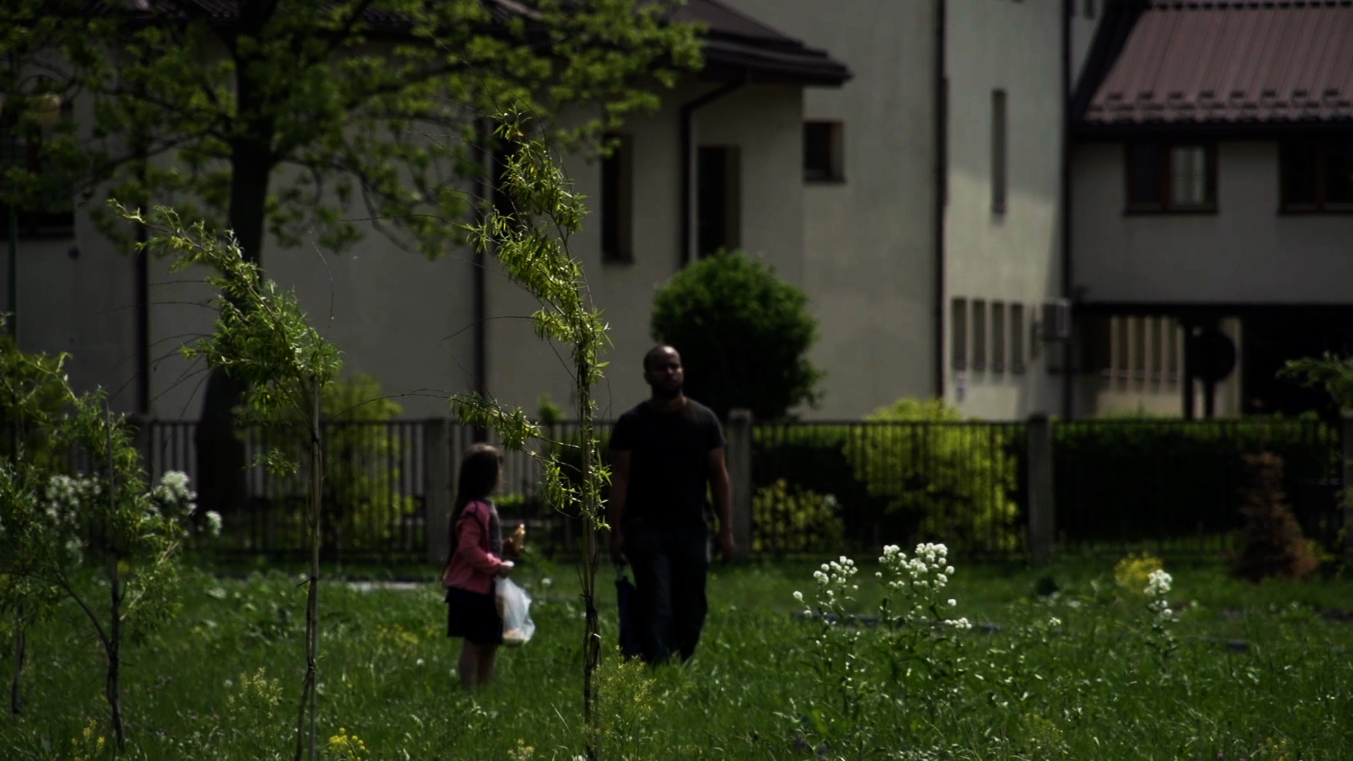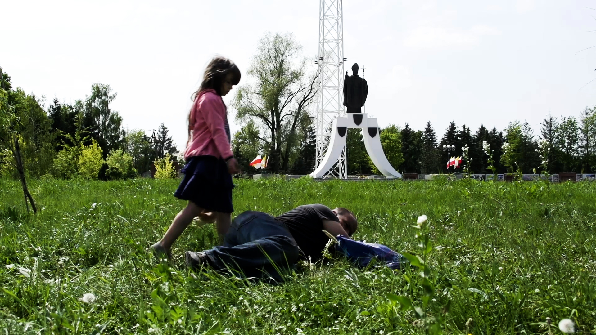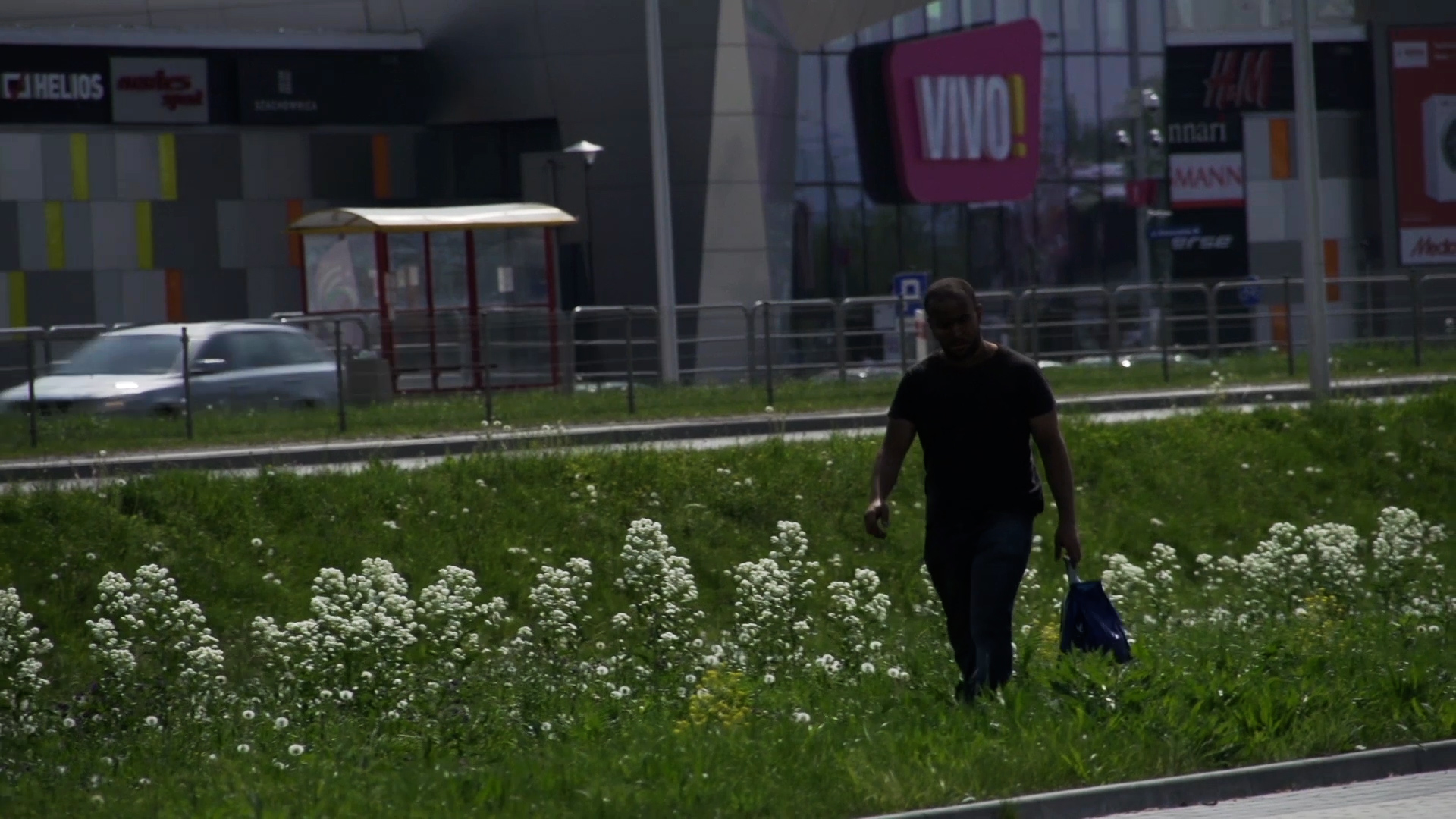 Zwyczajny dzień. W centrum miasta pomiędzy galerią handlową a pomnikiem papieża widzimy człowieka o ciemnej skórze, najprawdopodobniej Araba, o nieświeżym wyglądzie, który jak w transie chodzi tam i z powrotem z reklamówką w ręku. Na jego twarzy widać zmęczenie. W tym samym miejscu pojawia się starsza kobieta z kilkuletnią dziewczynką. Podchodzą do pomnika papieża. Klękają do modlitwy. Dziewczynka zauważa mężczyznę. Podchodzi do niego. Zmęczony mężczyzna - Arab pada na trawę. Dziewczynka rzuca mu rogalik. Odbiega. Na horyzoncie pojawia się chłopiec z psem, który ujada na mężczyznę leżącego w trawie. Po jakimś czasie Arab podnosi się i dalej chodzi. Młody chłopak przechodzący obok robi mu zdjęcia. Arab protestuje krzycząc: Allahu Akbar! Kiedy zapada zmrok, do wciąż chodzącego Araba podbiega inny nastolatek - wyrywa mu reklamówkę z dłoni. Odbiega w kierunku pomnika papieża. Za pomnikiem nastolatek zagląda do reklamówki. Odrzuca ją przerażony. Z reklamówki wypełza wąż.