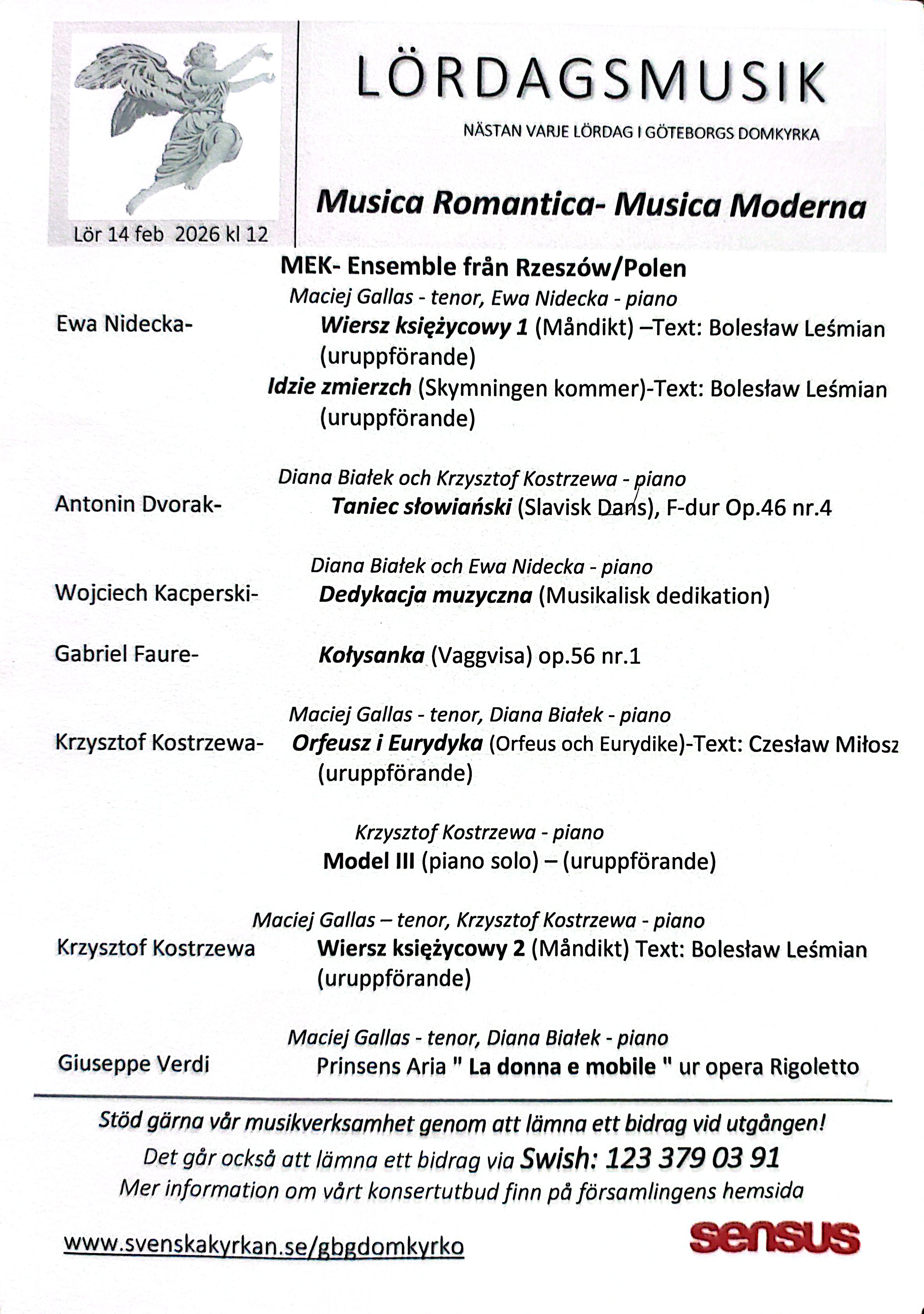 Koncert w Göteborgu, Gallas Domkyrka, Gallas Wiersz księżycowy, Gallas Orfeusz i Eurydyka, Gallas La donna e mobile, Gallas Idzie zmierzch, Gallas pieśni, Gallas Kostrzewa pieśni, Gallas Nidecka pieśni, Gallas pieśni współczesne, MEK, MEK Ensemble, 14-02-2026 Domkyrka, 14-02-2026 Göteborg, 14-02-2026 Gallas, Gallas koncert