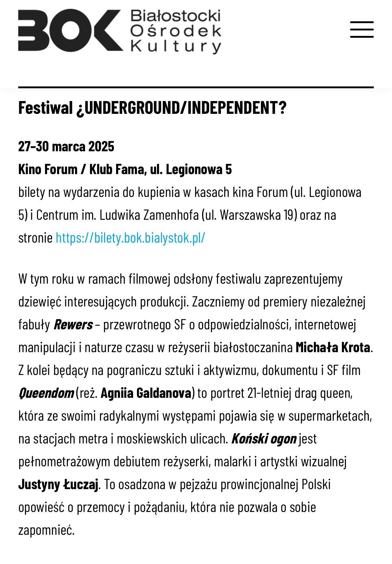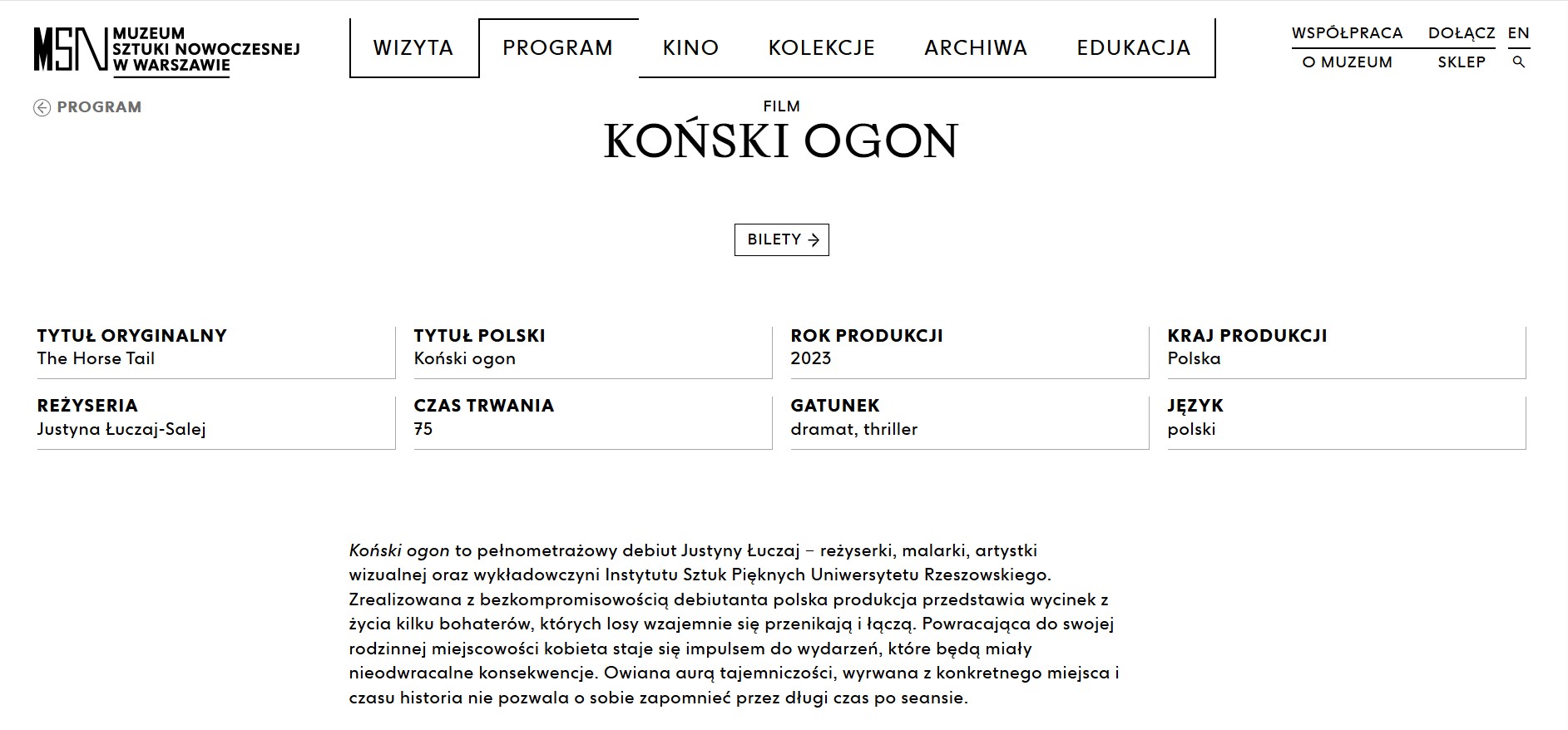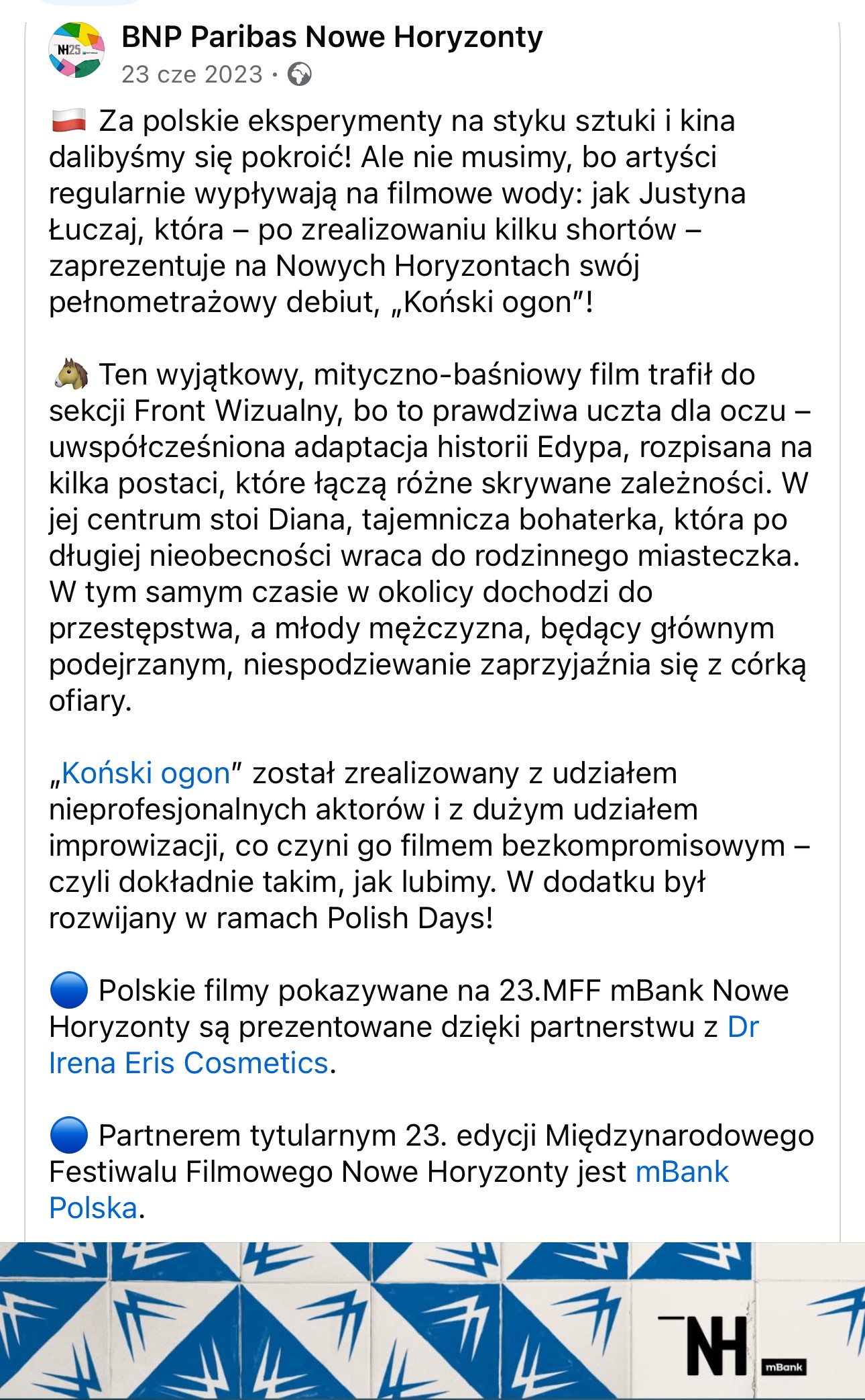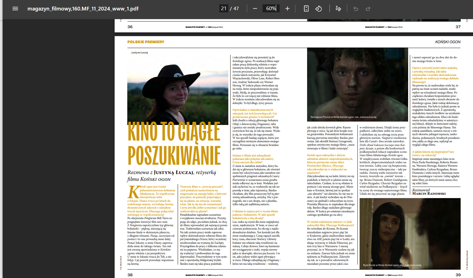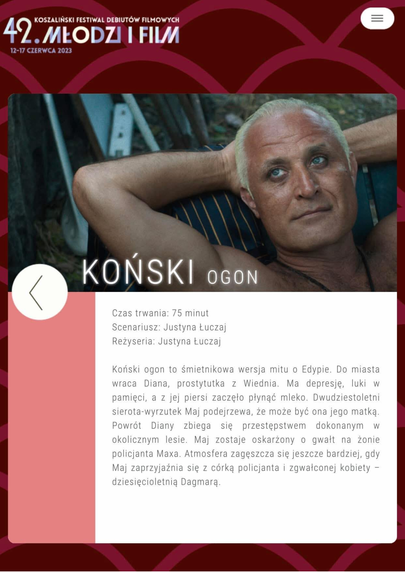 Pełnometrażowy debiut fabularny (scenariusz, reżyseria oraz współautorstwo montażu i scenografii). Film jest współczesną, oniryczną interpretacją mitu o Edypie. Występują w nim głównie aktorzy nieprofesjonalni. Wyprodukowany przez Studio Filmowe Indeks w Łodzi. Otrzymał dofinansowanie Polskiego Instytutu Sztuki Filmowej. Premiera światowa Mammoth Lakes Film Festival USA, premiera polska Młodzi i film – festiwal debiutów w Koszalinie. Dystrybucja kinowa w Polce – Reset. Film był pokazywany na 11 festiwalach zagranicznych i 6 polskich. Otrzymał 5 nagród i jedno wyróżnienie w konkursach międzynarodowych. Był nominowany do Polskich Nagród Filmowych w kat. Muzyka. Miał pokaz specjalny w Muzeum Sztuki Nowoczesnej w Warszawie.