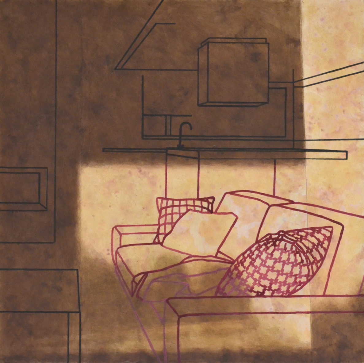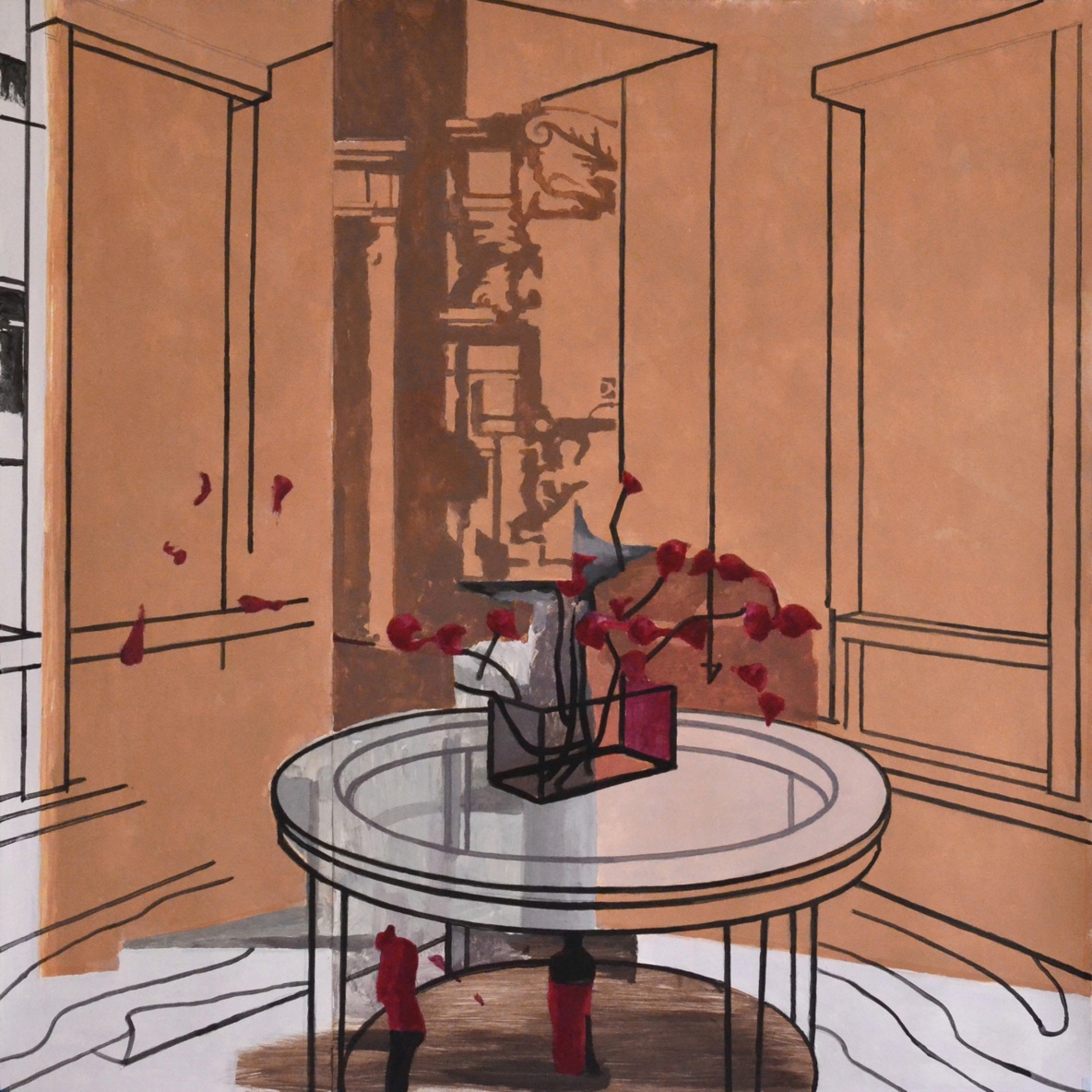 Fontanna 2021, akryl - 2021-100x100cm, Międzynarodowe Triennale Malarstwa Regionu Karpat - Srebrny Czworokąt 2021, Galeria ARP Zamek Krasiczyn,
