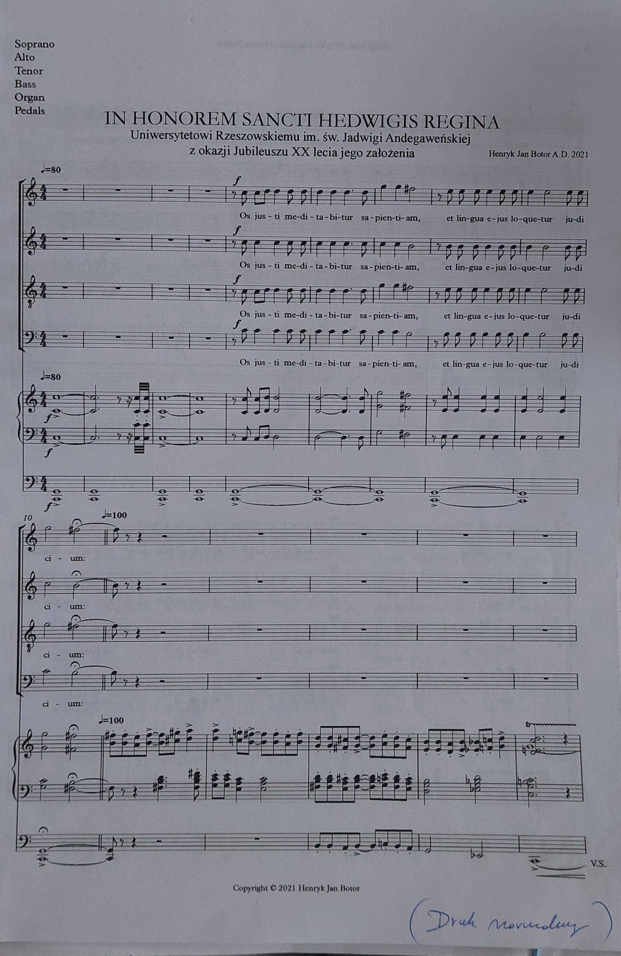 Henryk Jan Botor, Bożena Stasiowska-Chrobak, Honorem Sancta Hedwigis Regina, 20-lecie Uniwersytetu Rzeszowskiego, kompozycja na chór i organy, Chór Wydziału Muzyki Uniwersytetu Rzeszowskiego
