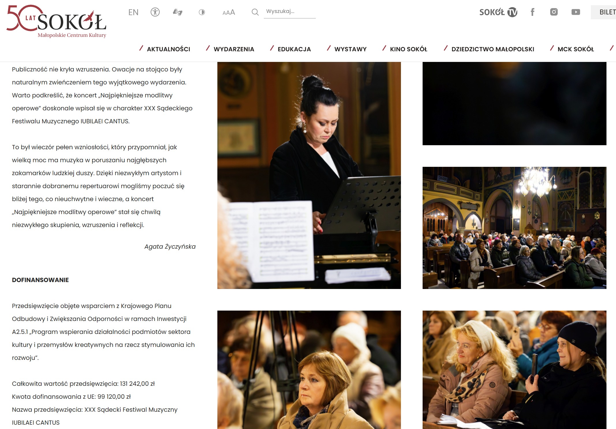 Międzynarodowy Festiwal „Iubilaei Cantus”, Jolanta Skorek-Münch, Karina Skrzeszewska, Najpiękniejsze modlitwy operowe, kościół Św. Mikołaja w Nowym Sączu
