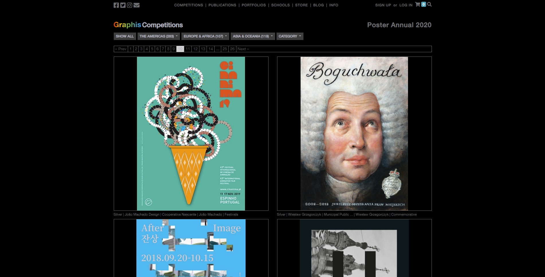 Nazwiska autorów i nazwy studiów – laureatów Srebrnej Nagrody – wymienione są na 4. stronie okładki. W edycji „2020” Srebrna Nagroda przyznana została 140 studiom projektowym i indywidualnym autorom plakatów z całego świata, w tym tak sławnym jak: Finn Nygaard, Günter Rambow, João Machado, Kari Piipo, Melchior Imboden, Stephan Bundi czy Yossi Lemel.